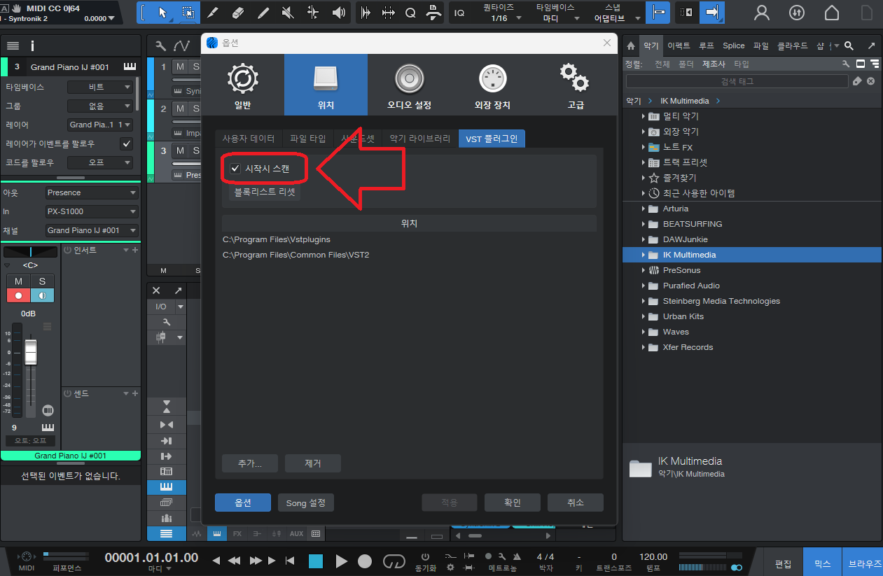 스원의 vst plug -ins 경로도 처음 설정한 그대로 되어있고요