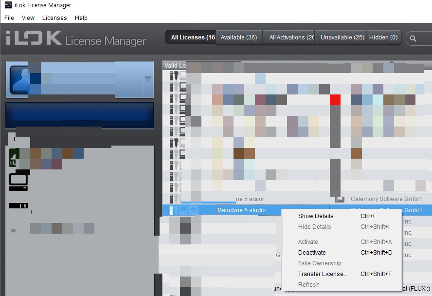상세 질문 : celemony에서 ilok계정을 등록했는데 Deactivate가 안 눌려요ㅠㅠㅠ 글자 자체도 안 뜨는데 어떻게 비활성화 하나요?