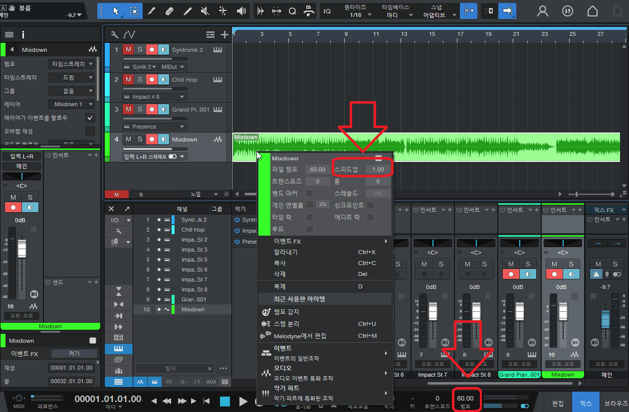 템포 조정이 안 되는 건지요? 우측 하단에 있는 템포를 저정해도 변화가 없던데요